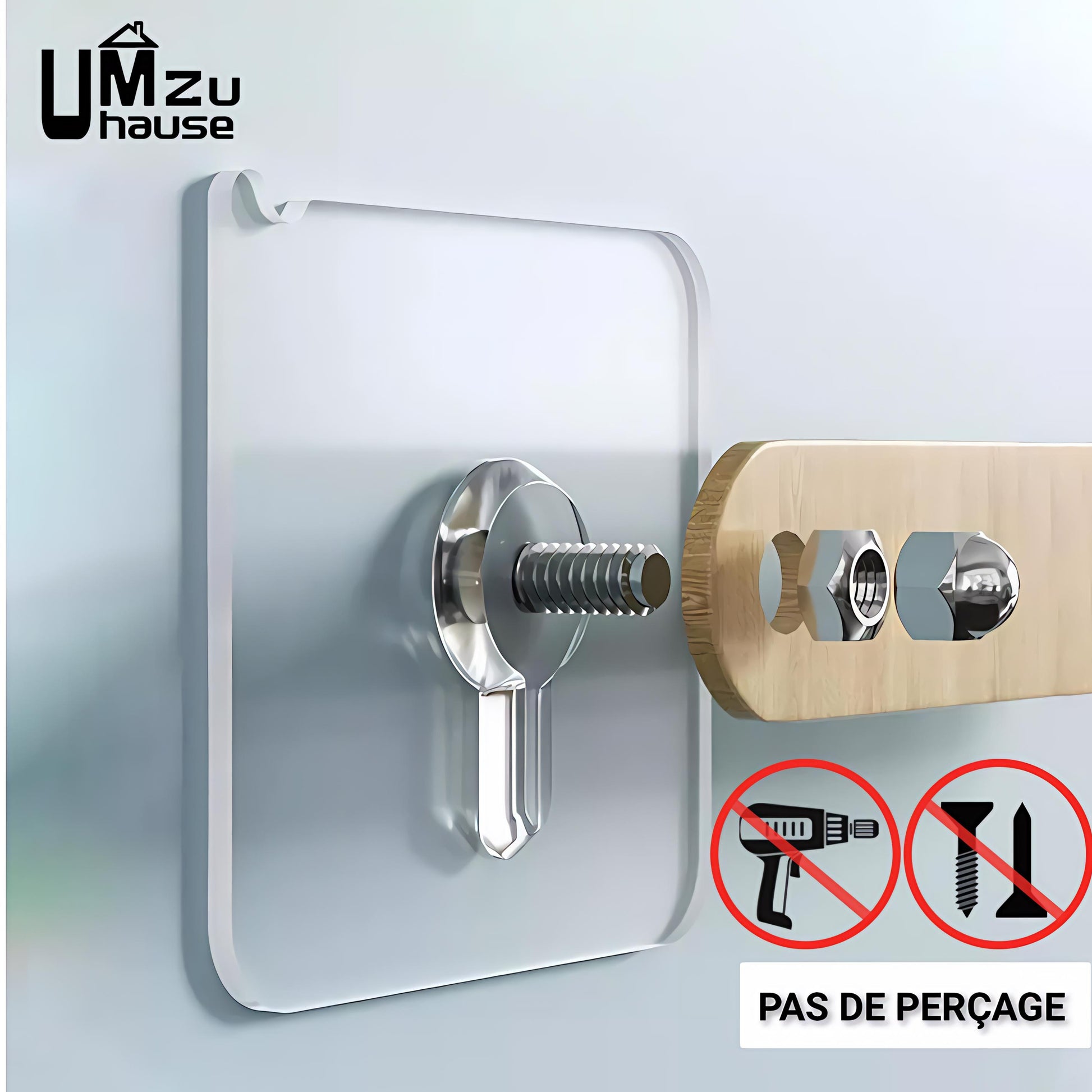 Non, aucun perçage n’est nécessaire. L’adhésif puissant permet une installation rapide et sans dégâts.